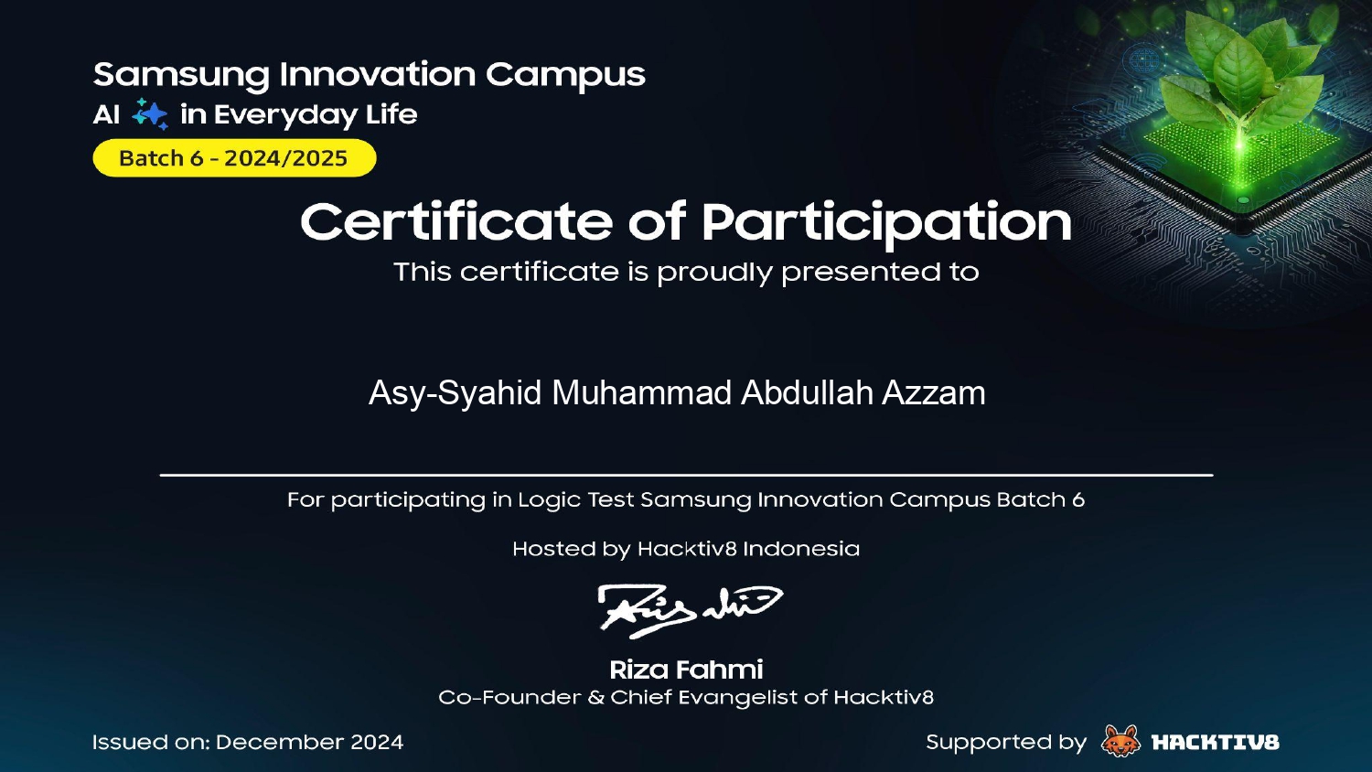 - Mengikuti lomba Samsung Innovation Campus, belajar IoT, mengerjakan proyek Wokwi, serta mengembangkan proyek web dan IoT.